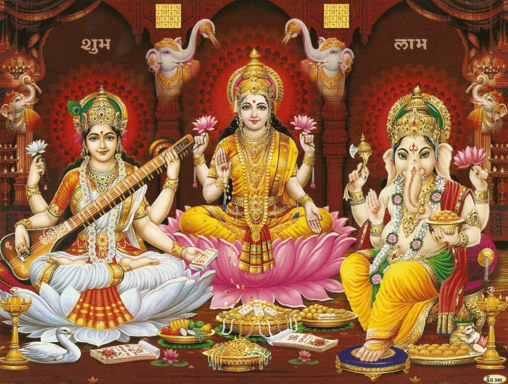 కొన్ని ప్రాంతాలలో.. ముఖ్యంగా పశ్చిమ, దక్షిణ భారతదేశంలో జ్ఞానం, కళల దేవత అయిన సరస్వతి దేవిని కూడా దీపావళి కాలంలో పూజిస్తారు. నిజమైన శ్రేయస్సు కేవలం డబ్బు లేదా అదృష్టం కాదు. ఇది జ్ఞానం, అభ్యాసం కూడా ఇది శాశ్వత వృద్ధిని తెస్తుంది. సరస్వతి ఆశీర్వాదాలు జ్ఞానం సంపదతో పాటు ఉంటుందని, ఒకరి విజయం అహంకారానికి కాదు, జ్ఞానోదయానికి దారితీస్తుందని నిర్ధారిస్తుంది. అందువలన లక్ష్మీ, గణేశుడు, సరస్వతి అనే త్రయం.. పూర్తి శ్రేయస్సు, సంపద (లక్ష్మి), జ్ఞానం (సరస్వతి), శుభప్రదమైన ప్రారంభాలను (గణేశ) సూచిస్తుంది.